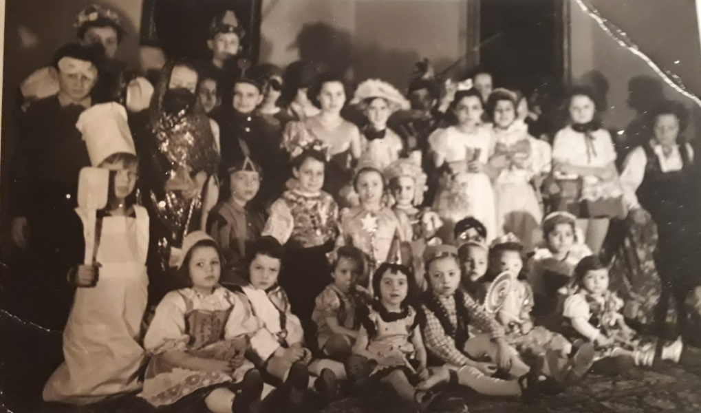 ![]() Carnevale bambini delle varie ambasciate: Gloria sotto 4. da sinistra / 4. below from the left / 4. z prava, Claudia in mezzo con scollatura / Claudia in the midle with a neckline |