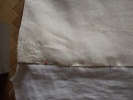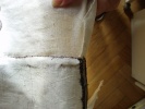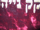 | Synagogální opona během opravy Opona přišita na zpevňující plátno |