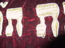 | Synagogální opona během opravy Opona přišita na zpevňující plátno |
